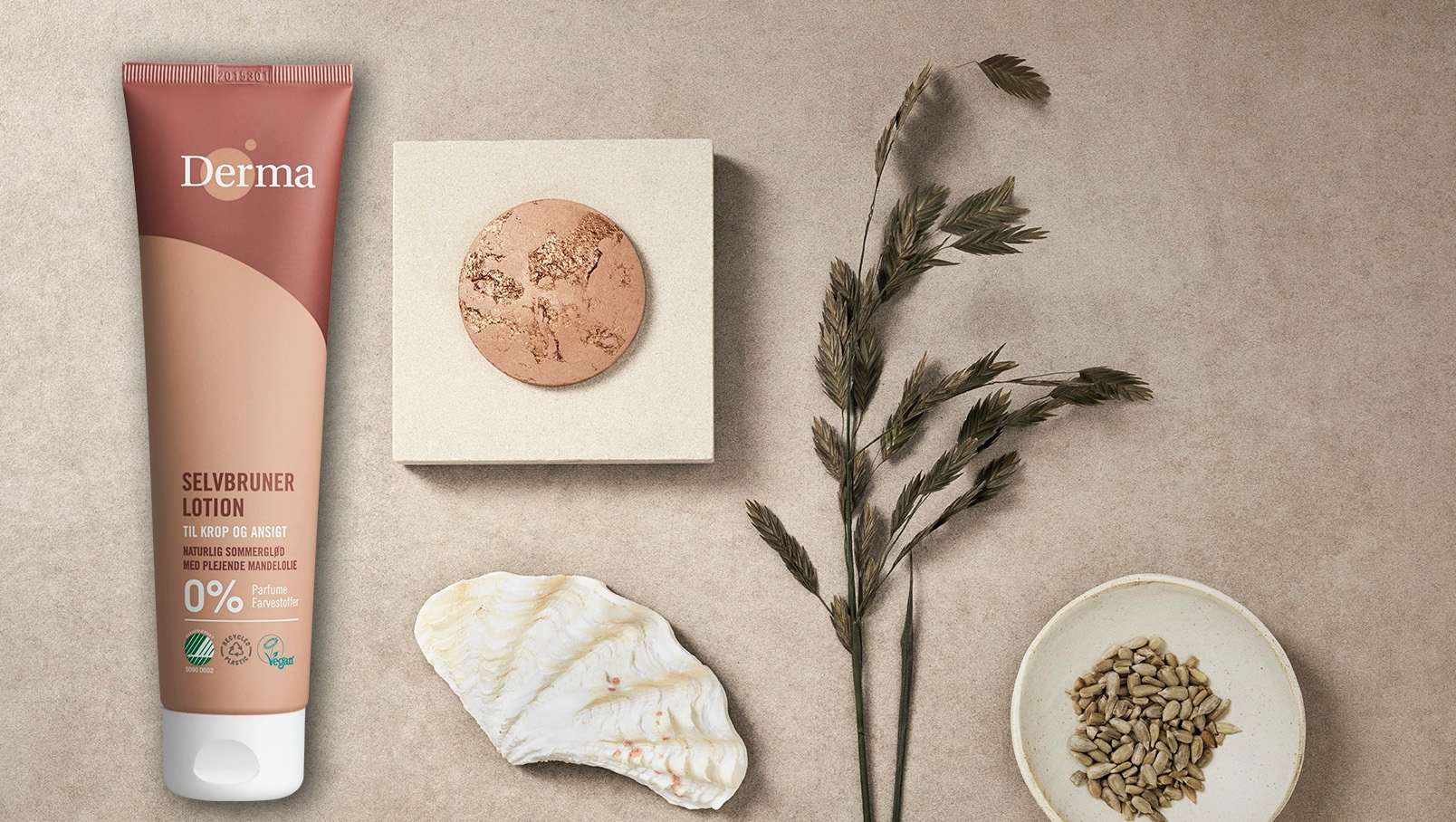 Det perfekte sæt til at sætte lidt kulør på den mørke vintertid. Den lækre svanemærkede Selvbrunerlotion fra Derma (99 kr.) giver huden en naturlig, smuk og sund solbrun farve, samtidig med, at den med fugtgivende mandelolie, shea butter og glycerin efterlader huden blød, smidig og velplejet.
