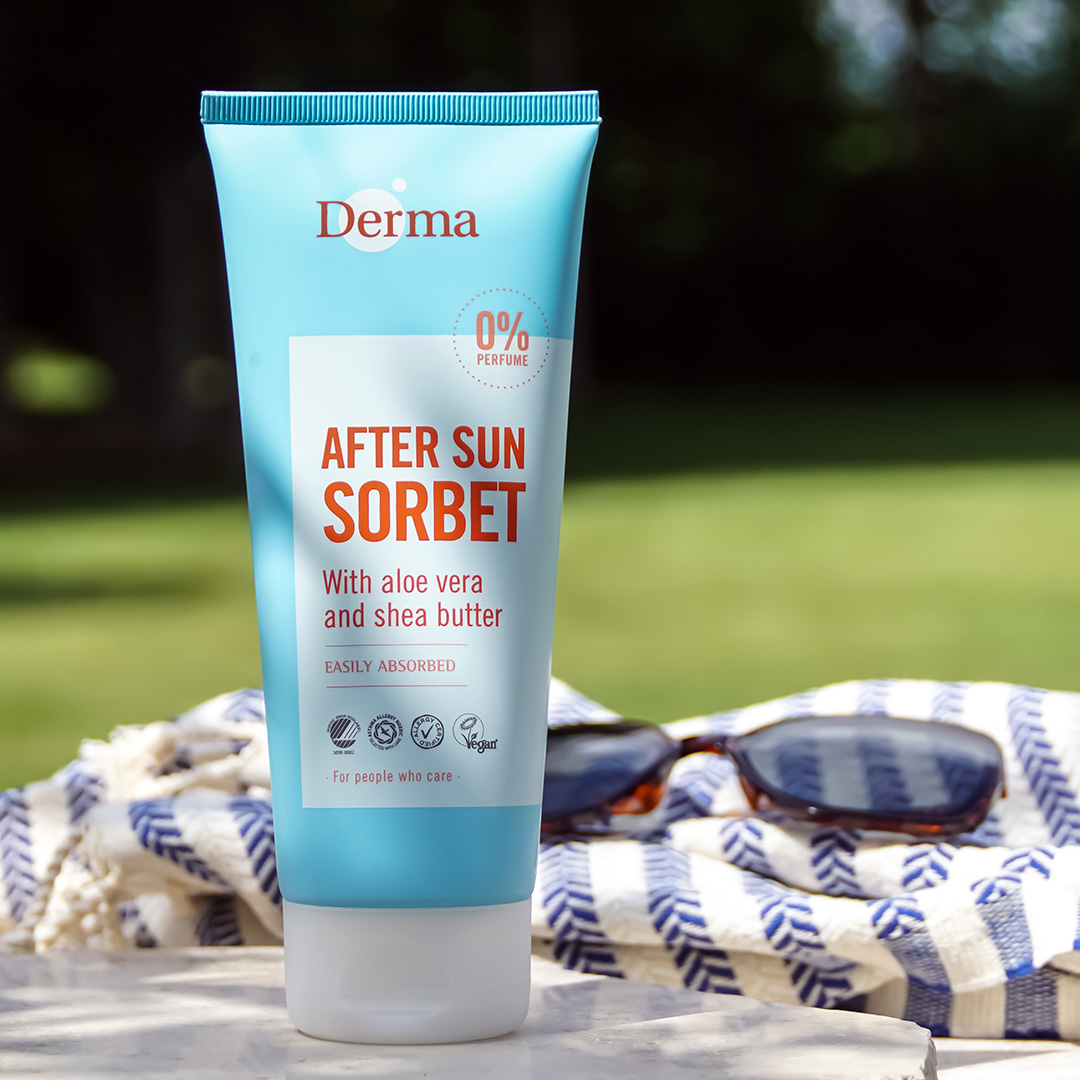 Derma After Sun Sorbet er det perfekte valg, når huden trænger til masser af fugt og beroligende pleje efter en dejlig tid i solen.